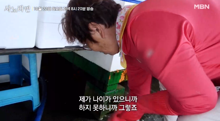 비바람이 강하게 부는 항구에서, 가족을 위해 헌신하는 어머니 미자씨가 아침부터 비바람 속에서 일을 하고 있습니다. 비가 걱정되는 상황에서도 멈출 줄 모르는 빗줄기 속에서 어머니는 물고기들이 상하지 않도록 힘쓰고 있습니다. 어머니는 비를 맞으며 피곤한 상태에서도 열심히 일을 하고 있는데, 그 옆에서 전화 주문을 받던 딸은 뒤늦게 도움을 제공하려고 노력하지만, 그 역시도 서툴게 일을 하며 어머니의 부담만 늘어나게 됩니다. 비바람에 힘들게 일한 어머니는 결국 집으로 들어갑니다. 어머니의 건강이 날로 약해지는 것을 보며, 큰딸은 걱정이 더해지고 있습니다.
