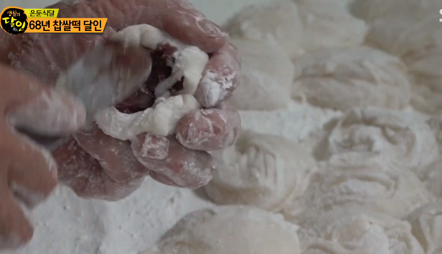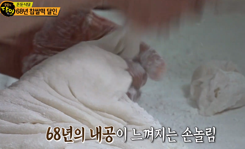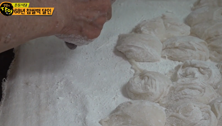 15살때부터 만들어서 68년의 경력을 자랑하는 생활의 달인 68년 대구 찹쌀떡 달인 이신데요 여기 생활의 달인 대구 찹쌀떡 은 특히 얇은 피 아래 숨겨진 넓적한 크기와 찹쌀떡의 독특한 쫀득함은 한 번 맛보면 쉽게 잊혀지지 않는다고 전해집니다