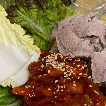 주인의 손맛으로 탄생한 특별 서비스 메뉴인 오징어볶음은 구수한 수육, 맛깔스러운 보쌈김치, 진한 국물의 감자탕과 함께 먹으면 푸짐한 식사가 완성됩니다. 이는 밥과 함께 먹어도 푸짐하고, 주당들의 술안주로도 안성맞춤이라고 합니다.