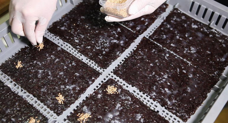 다시마로 우린 육수로 만든 찹쌀풀을 얇게 바르고, 통깨를 뿌려 고소함을 더합니다. "맛있는 밥 반찬으로"라는 슬로건 아래, 바삭하고 삼삼히 간이 된 김부각은 식사 시간에는 누구나 좋아하는 밥 반찬으로 최적입니다. 손이 자주 가게 만드는 그 특별한 맛으로 많은 이들에게 사랑을 받고 있습니다.