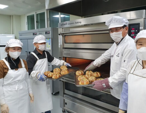 빵집을 이끄는 주인장은 김희상 이장님(51세)으로, 마을에서 생산되는 밀과 쌀, 사과, 팥 등 다양한 농산물을 활용하여 빵을 만들고 있습니다. 이장님은 평생 농사만 짓던 주민들을 대상으로 천연 발효종 우리밀 빵을 굽는 비법을 전수받아 빵을 만들기 시작했습니다. 마을 주민들은 농사부터 빵 반죽, 굽기, 판매까지 협력하여 빵집을 운영하고, 작년에는 연매출이 3억 원을 넘어선 대박을 기록했다고 합니다.