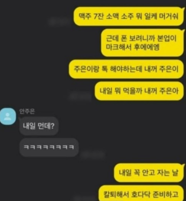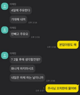본업과 주유는 이씨와 안씨가 만든 단어라고 하는데 두 사람은 “4일에 주유한다” “기대해 내꺼” “안빼고 주유요” “본업이랑도 해” “내일은 하체 하는 날이다” 등의 대화를 하는데 여기에서 본업은 여자친구인 A씨를 가리키고, 주유는 성관계 관련 용어를 뜻으로 암호를 의미하는듯 합니다