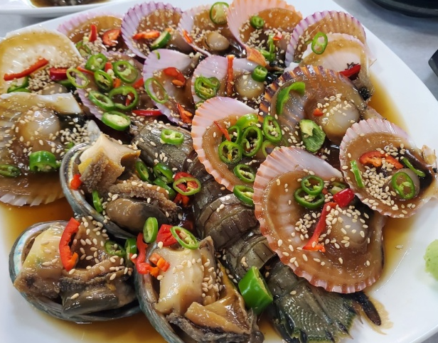 찬바람이 불기 시작하는 시기에 3개월 동안 키운 통통하게 오른 홍가리비는 고성에서 전국 생산량의 70%를 차지하며 신선도가 보장됩니다. 요리를 전공한 부부가 직접 운영하며, 고성 앞바다에서 가져온 홍가리비를 정성스레 이물질을 제거하고 손질합니다. 이러한 정성은 홍가리비를 껍데기째 요리할 때 알맹이의 육즙을 보존하고, 맛간장의 감칠맛을 극대화하기 위함이라고 하는데요