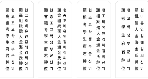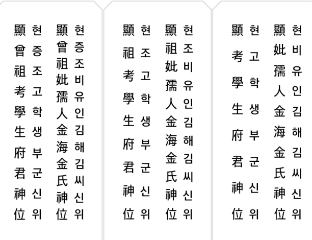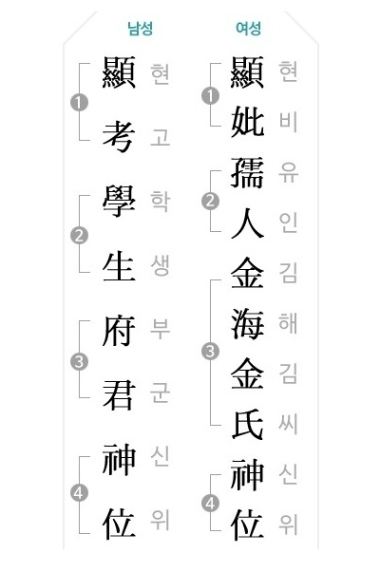 아버지에게 제사를 지낼 때는 '현고(顯考)', 어머니일 경우 '현비(顯妣)'로 표기합니다.