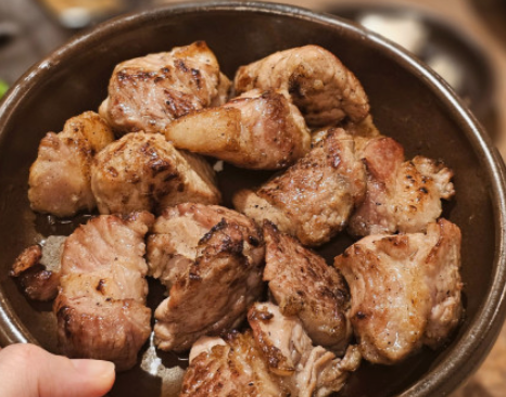 궁금증을 자아내는 다른 메뉴로는 목살도 있으며, 이 역시 육즙이 풍부해 많은 사람들에게 사랑받는 신용산 맛집의 메뉴 중 하나입니다. 젓삼겹은 항아리에 숙성되어 매우 촉촉하고 야들야들한 식감을 자랑합니다. 여기에 고기와 함께 나오는 고추, 버섯, 마늘은 모두 신선해 고기의 맛을 더욱 풍부하게 합니다. 고기 양념은 약간의 달달한 맛이 나며, 이는 단독으로 먹어도 매우 맛있음을 의미합니다.