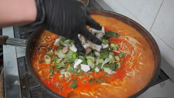 이 식당에서는 손님들의 기대에 부응하기 위해 매일 7가지 다양한 반찬을 정성스럽게 준비하고, 면의 쫄깃한 식감을 위해 전통 족타 기법으로 면을 직접 뽑습니다.