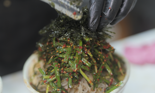 이 잔치국수 전문점은 산더미처럼 쌓인 부추로 유명하며, 주문이 들어올 때마다 싱싱한 부추겉절이를 즉석에서 준비해 최상의 맛과 신선함을 제공합니다. 부추겉절이는 수분이 많이 생길 수 있는 재료이기 때문에, 주문 즉시 준비하는 번거로움을 기꺼이 감수합니다.