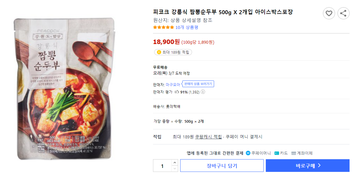 6시내고향 강릉 초당순두부 짬뽕순두부 주문 자세한 정보 확인 하고 주문하세요