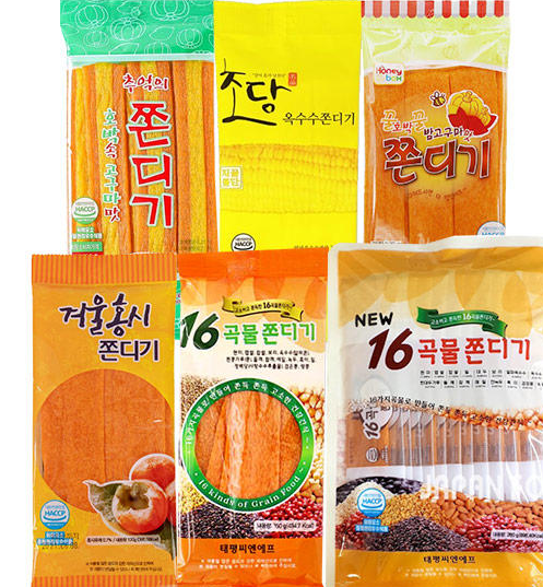 일반적으로 문구점이나 과자점에서 판매되며, 사각형(대부분 직사각형) 종이 모양을 한 이 간식은 쫀득이, 쫀드기, 쫀듸기, 쫀디기, 쫄쫄이 등 여러 이름으로 불려집니다
