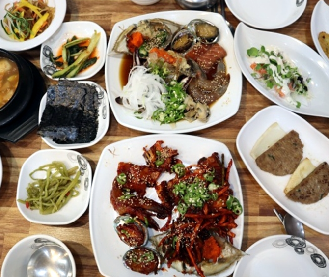 이곳의 대표 메뉴는 암꽃게 간장모듬장 정식으로, 이 메뉴를 주문하면 새우장, 전복장, 연어장, 소라장까지 함께 맛볼 수 있는 인기 메뉴입니다. 다양한 해산물 장을 한꺼번에 즐길 수 있어 고객들의 입맛을 사로잡습니다. 게장은 짭조름하면서도 꽃게의 풍부한 살이 가득해 밥과 함께 비벼 먹으면 감칠맛이 뛰어납니다. 특히 밥에 게장을 듬뿍 얹어 비벼 먹을 때 느껴지는 깊은 풍미는 이 집의 자랑 중 하나입니다.
