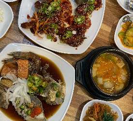 기본적으로 제공되는 밑반찬도 다양하고 정성스럽게 준비됩니다. 과일샐러드, 연어샐러드, 된장찌개 등 다양한 반찬들이 함께 나오며, 밥상 가득 채워지는 구성이 손님들에게 큰 만족을 줍니다. 특히 된장찌개는 구수한 맛이 일품으로, 간장게장과 함께 먹을 때 더욱 잘 어울립니다. 이곳에서는 하나하나의 반찬도 신경 써서 준비하며, 각 재료의 신선함이 그대로 느껴집니다.