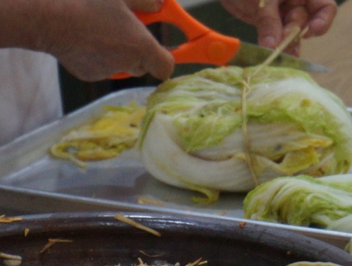 오숙자 명인의 막내 딸 다슬씨는 부모의 전통을 계승하고자 합니다 그녀는 실고추로 색을 내고 버섯, 생강, 대추 등 다양한 채소를 김치 소스에 넣고, 귀한 낙지와 새우를 직접 썰어 넣는 반지 김치를 만드는 방법을 연구하고 있습니다 그러나 아직은 오 명인이 다슬씨에게 전수할 수 없는 중요한 단계가 남아 있습니다. 바로 절인 배추 위에 갖은 재료를 정확하게 썰어 소를 올리는 작업입니다