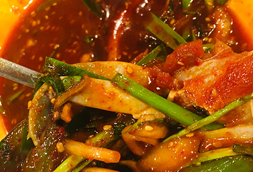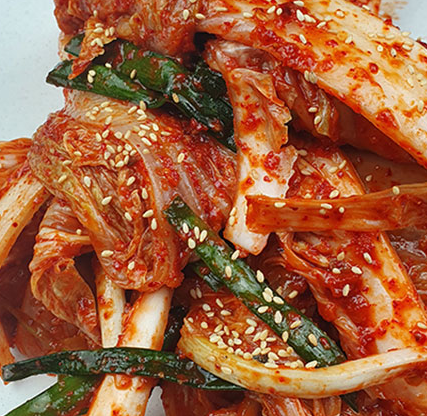 게살이 풍부하게 들어간 김치 양념은 어떤 재료와 조합되더라도 입맛을 사로잡는 감칠맛을 자랑합니다. 광주의 대표 음식과 김치를 조화롭게 어울리게 하기 위해 다양한 종류의 김치를 만들어냅니다 자신만의 고유한 레시피로 만든 저염식 간장게장에는 쪽파김치를 올려 감칠맛을 극대화시키고, 갓김치는 달달하고 짭조름한 양념의 떡갈비와 어울립니다