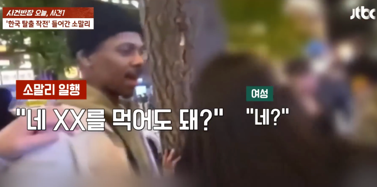 미국인인 소말리는 유튜브 라이브 방송을 통해 평화의 소녀상에 입을 맞추거나, 행인에게 성희롱과 인종차별적 발언을 하며 편의점에서 난동을 부리는 등의 행위로 비난을 받았습니다.