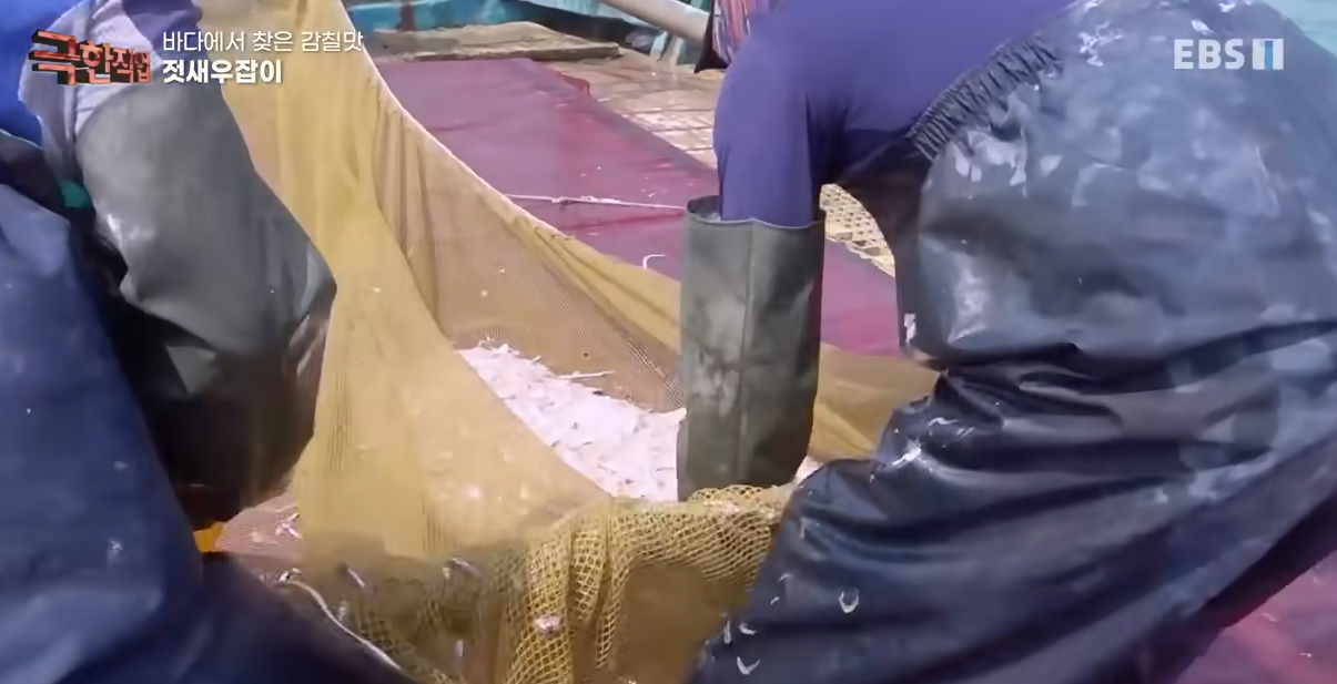 찬 바람이 불면 어김없이 찾아오는 김장철이 이제 다가왔습니다 이 시기에는 김장 필수품이 됩니다. 바다에서 생활하며 밤낮없이 젓새우를 잡는 이들이 바로 오늘의 주인공분들인데요 한편, 입맛 돋우어 주는 반찬용 젓갈을 만들기 위해 엄청난 양의 재료를 손질하고 세척, 양념까지 정성을 다해 만드는 다른 이들도 있습니다