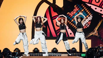 있지는 제이 발빈의 '미 헨데' (Mi Gente)로 불꽃처럼 타오르는 열정을 선사합니다. 강렬한 퍼포먼스로 라틴 힙합 곡을 소화하며 무대를 매료시키며 멕시코 현지 팬 1만 5천 명을 열정적으로 사로잡습니다
