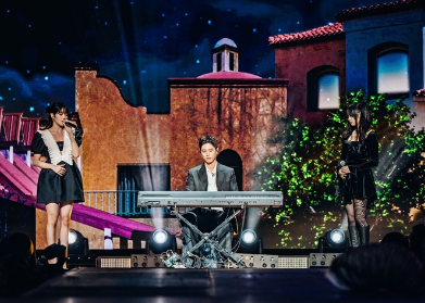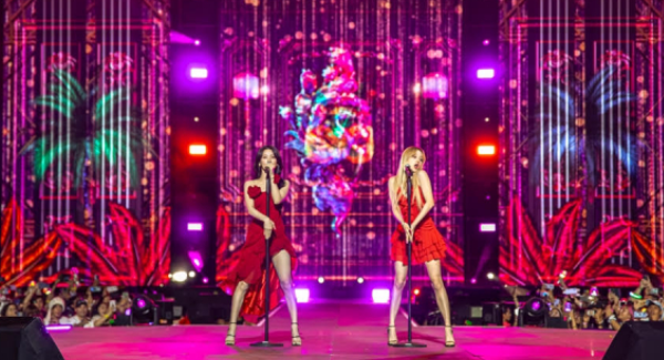 한편, (여자)아이들의 미연과 우기는 '데스파시토' (Despacito)로 세련된 라틴 무대에 고혹적인 매력을 더합니다. 그들은 무대가 시작되자 치명적인 눈빛으로 변신하고, 멕시코의 열정을 담은 레드 컬러의 드레스를 입고 강렬한 무대를 선보입니다