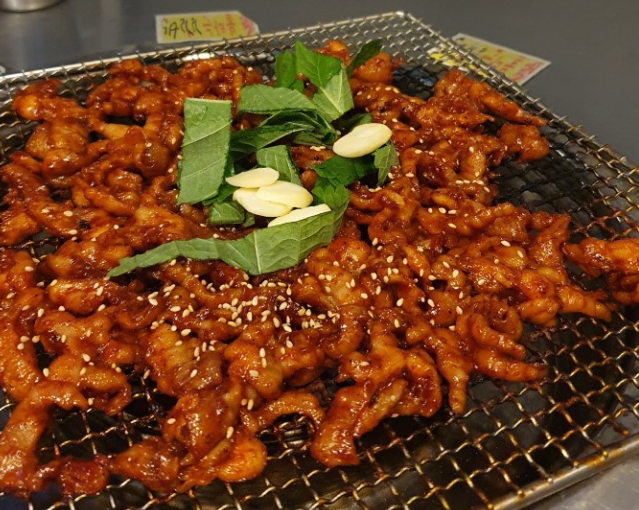 닭발의 매운 정도는 네 단계로 세분화되어 있으며, 고춧가루만을 사용하여 깔끔한 매운맛을 제공합니다. 닭발은 주문이 들어오면 숯불에 두 번이나 구워져 진한 불향을 풍깁니다.