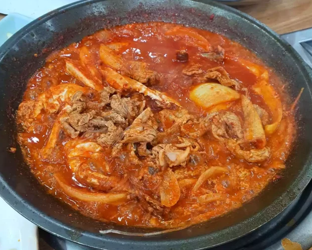 여기는 1979년부터 이어진 긴 역사를 가진 이 식당은 대표 메뉴로 ‘불꽃 백반’을 자랑하고 있습니다. 이 특별한 메뉴는 냄비에 돼지 불백과 양념게장을 넣고 함께 끓여 먹는데, 돼지고기와 양념게장이 보글보글 끓으면 접시에 밥을 담고 상추와 함께 비벼 먹으면 됩니다. 돼지 불고기의 달달한 맛과 게장이 익으면서 우러나온 시원한 맛이 결합하여, 깊은 감칠맛을 느낄 수 있습니다. 이러한 조합은 오랜 역사를 가진 이 식당만의 특별한 맛을 준다고 합니다