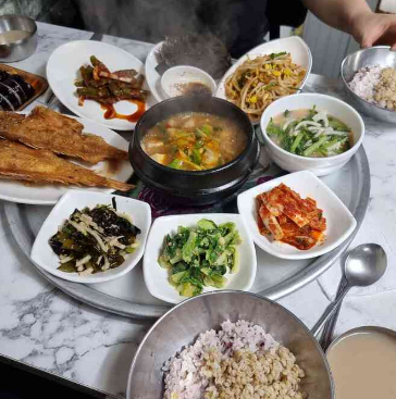 이 소박한 느낌의 한식당은 푸짐한 가정식 보리밥 정식으로 유명합니다. 고등어 구이와 다양한 나물반찬, 된장찌개로 이루어진 백반은 밥을 한 그릇 더 청하는 손님들이 많이 찾는 인기 메뉴입니다